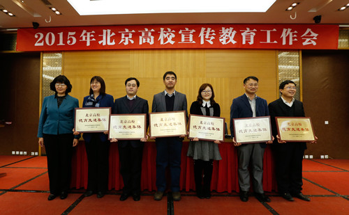 思政部荣获2013-2014年度北京高校德育工作先进集体,思政部李淑文老师《切脉民生:京郊农民从业状况调查》,获2014年北京高校青年教师优秀社会调研成果一等奖。之后大会还总结交流深入开展宣传教育工作的成效与经验。