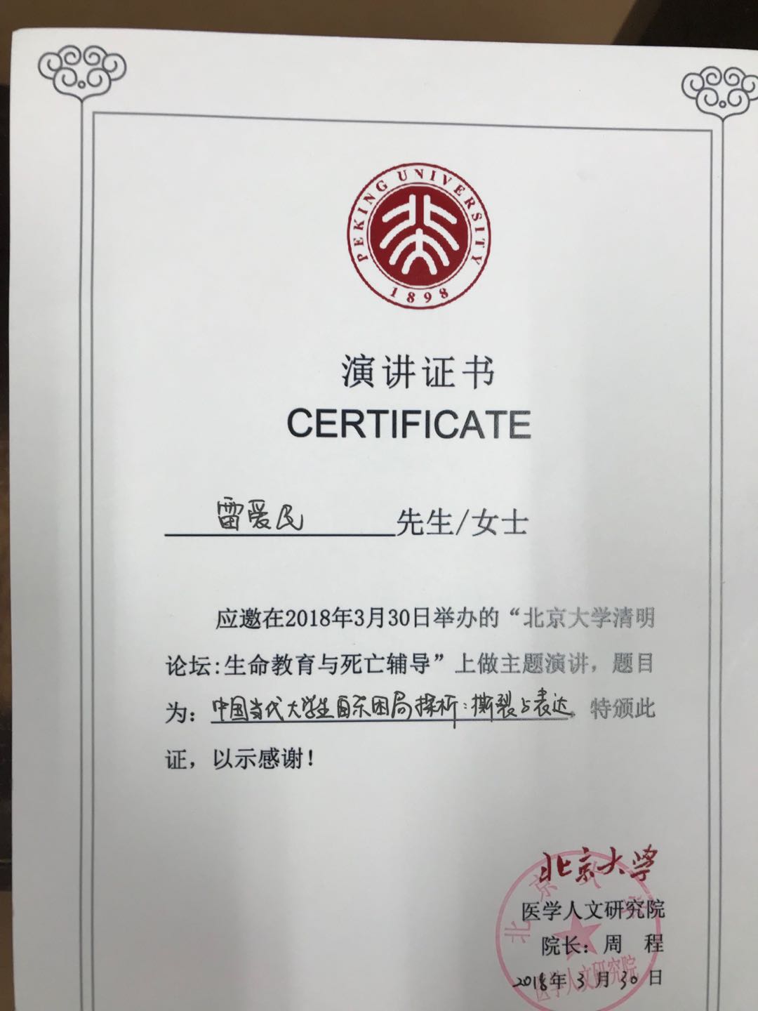 2018年3月30日,北京大学清明论坛——“生命教育与死亡辅导”在北京大学英杰交流中心举行,成人看片