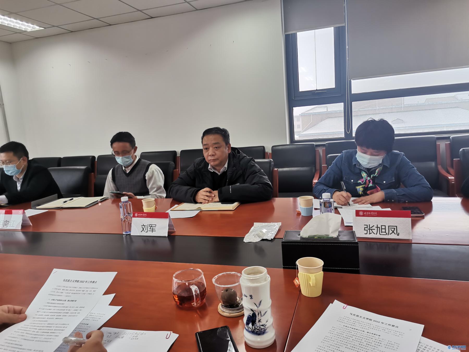 直属党支部书记张建宝、院长李邢西围绕基层党建、思政课程改革创新、马克思主义理论学科建设、“三全育人”工作格局的协同深化、校地共建融合发展、研究生招生与培养等向刘军院长一行进行了工作汇报。