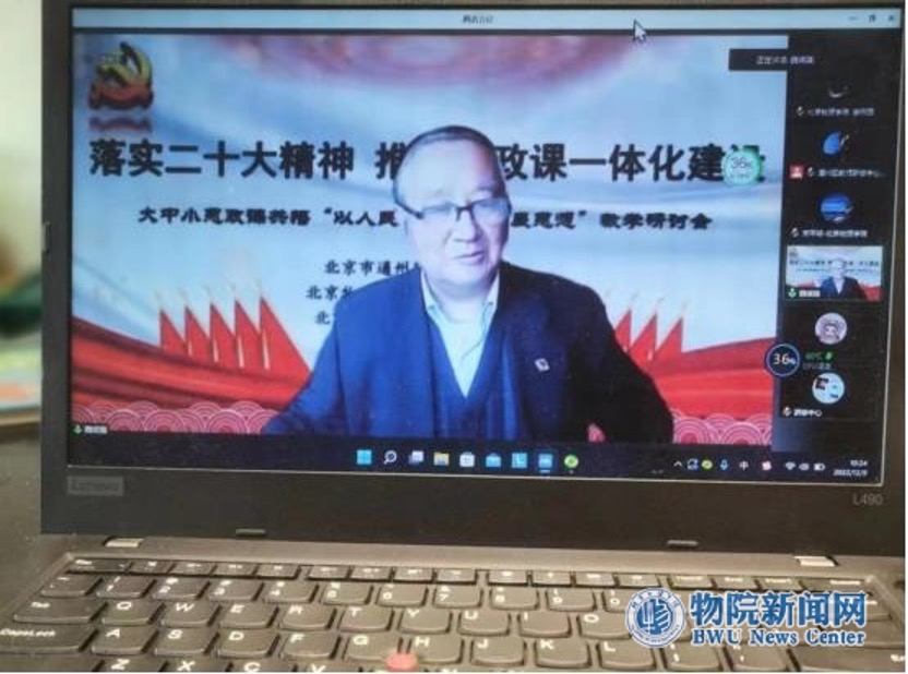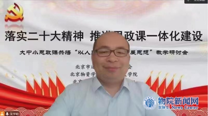 与通州区教师研修中心携手组织大中小学思政课思政课一体化教学研讨会。本次研讨会以共悟“以人民为中心”思想伟力为教研主题,旨在深入学习贯彻落实党的二十大精神,推动习近平新时代中国特色社会主义思想进课堂、进头脑,全面贯彻落实国家和北京市关于思政课改革创新的系列部署,推动建构“大思政课”育人格局。