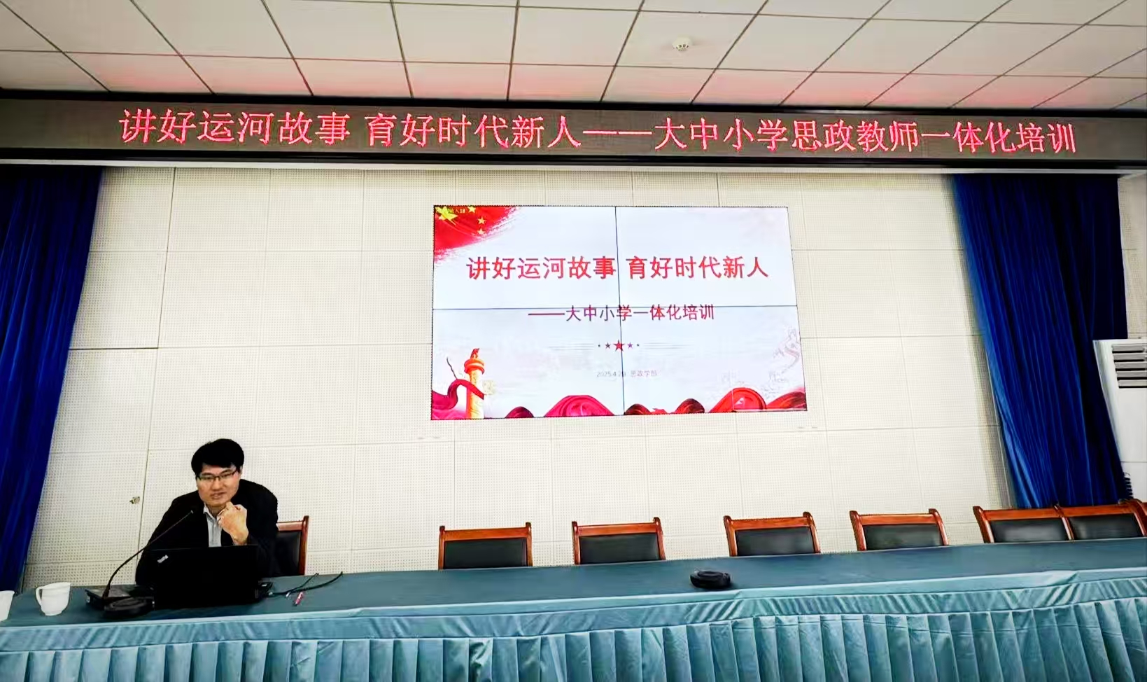 党总支书记张建宝于2025年4月29日下午为通州区中小学思政教师队伍作“讲好运河故事 育好时代新人”专题培训。
