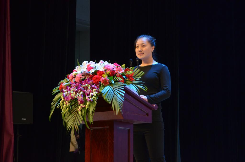 在校生代表,志愿者张亚楠分享了她与杨老师一同去万全县的经历,觉得获得的快乐要比付出的多得多。她说生命的宽度在于体验生活,作为大学生、研究生,应该多做有意义的事情,接触不同的生活,体验不同的感受。当代大学生最惭愧的生活是局限在学校,只面对同班同学,只面对书本,那只能体验生活的一小部分。通过在万全县的不一样的经历,让她更加感恩生活。公益是道德,是爱心,我们应该把爱与道德放在重要位置,即使生活艰难,也不要抱怨,要采取积极的行动,让世界因为我们的存在一点点地发生变化。她呼吁同学们都成为一个有爱有道德的人,让自己的生命与公益相连。